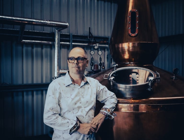 Noble Bootleggers began behind the bar, founded by Daniel and Kristin, who met in Melbourne’s hospitality scene before creating The Noble Experiment - a New York-style speakeasy known for bold, immersive cocktails. After a guest suggested taking the experience beyond the bar, they sold the venue in 2018, began distilling in their garage, and later moved operations to “Whisky Hill Farm” in Longlea near Greater Bendigo.